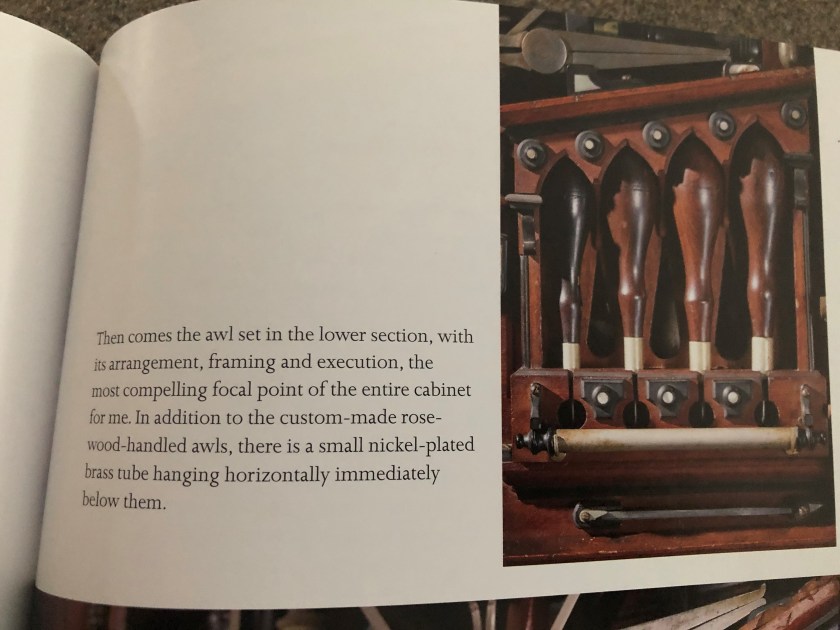 There’s a whole book about this guy’s tool cabinet written by a fellow by the name of Donald C. Williams1. You should read it. It might prove to be a life-changing experience for you. Like Mr. Williams, you might find the following passage to be particularly moving-if you’re into awls or possibly nickel-plated brass tubing. Or you just happen to like moving passages.