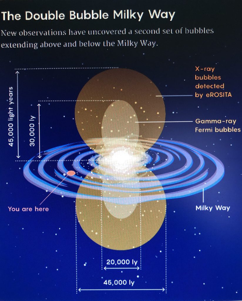 I am not making any of this up. And just recently we discovered that there are giant plumes of X-rays and gamma rays that erupted into space above and below the plane of the Milky Way glaxy.