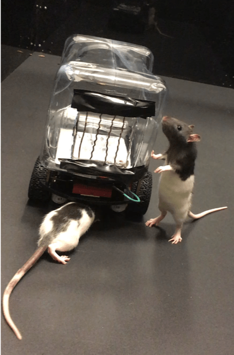 It took the rats about two hours, spread over eight weeks, to get the hang of navigating around their enclosures by gripping one of three different wires strung inside their transparent control pods (mounted on the frames of toy robot cars), completing various electric circuits in order to go right, left or forward.