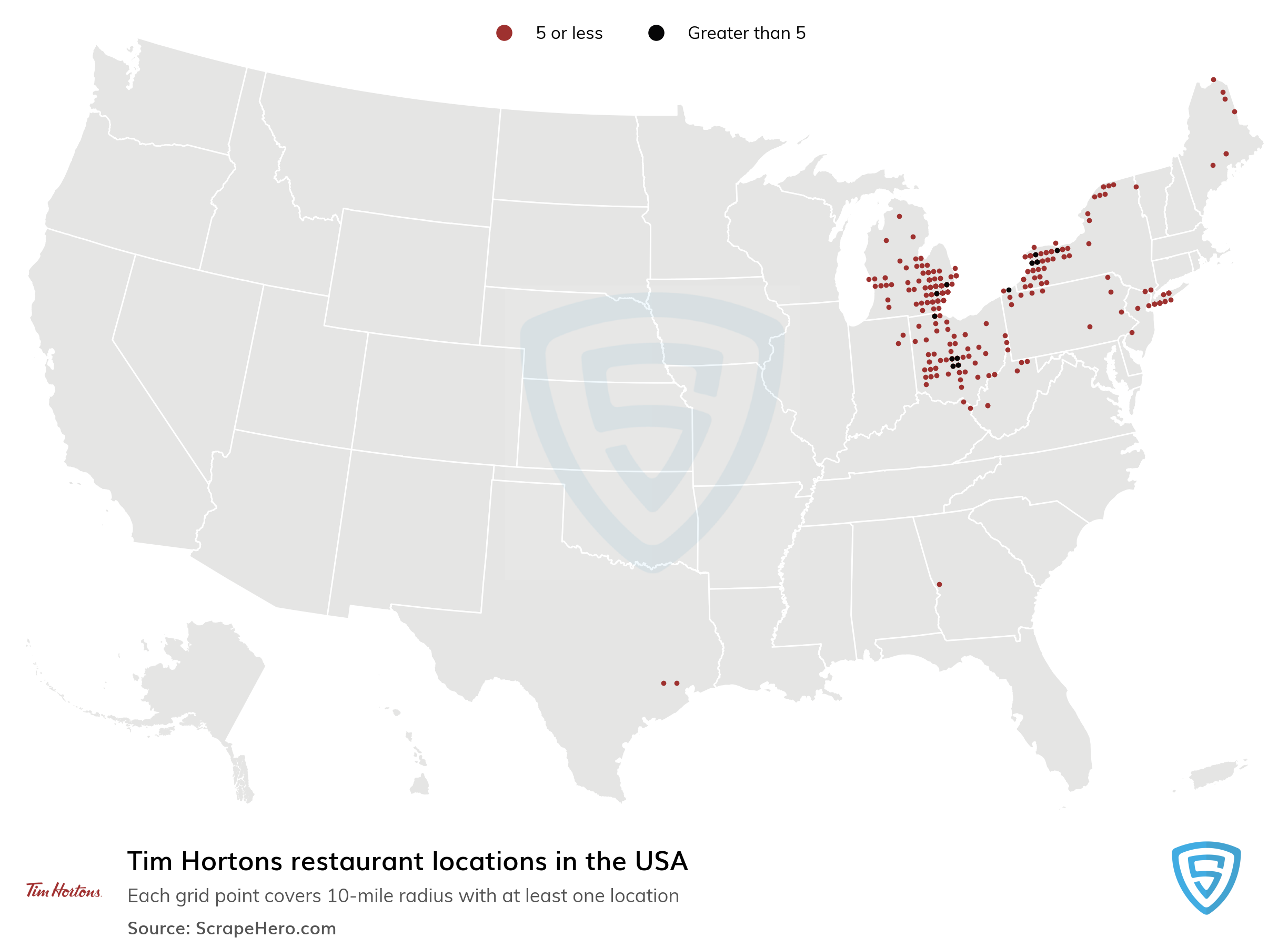 But getting back to the paucity of States brandishing a State Doughnut, why don’t more States have a State Doughnut? To gain insight into this problem, we should turn to the distribution of Tim Horton’s quick-service restaurants in the United States. Ed. note: there is a small Tim Horton’s nest located in Texas. Coincidence? I think not.