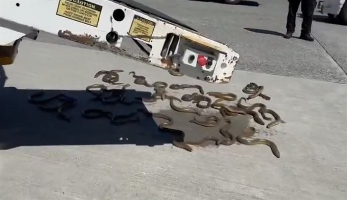 I did a little delving into this eel situation. A cooler full of live eels came open and spilled while it was being offloaded from a plane. The question is: what were the eels doing on the plane? Like the whale penis question, this eel question is another great question.