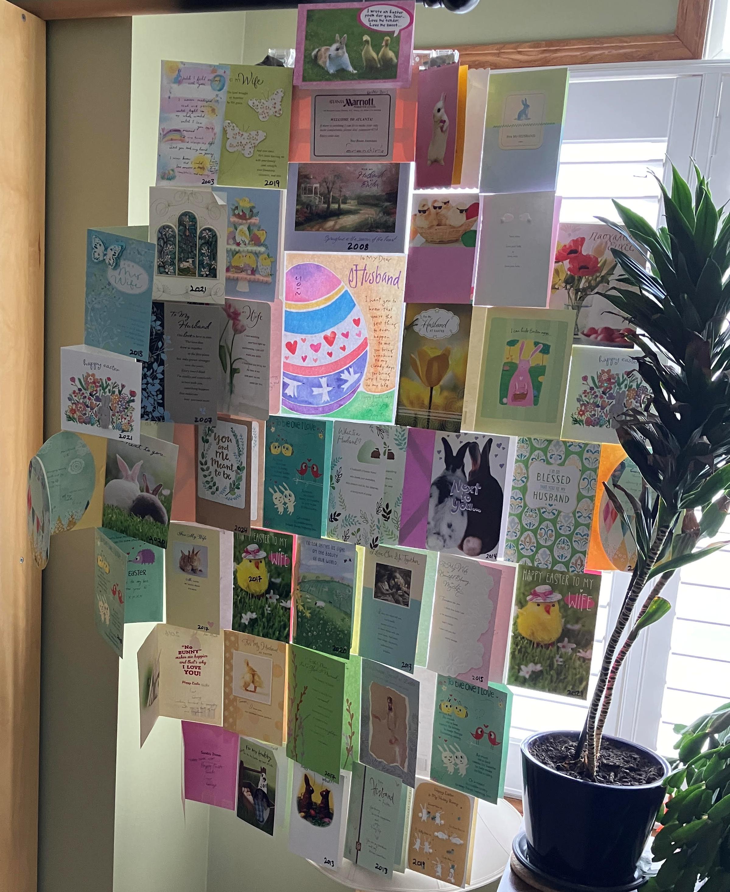 Unbidden, the mental image of the impressively large mound of cards that Jeanette and I have exchanged/accumulated over the years suddenly popped into my head.
