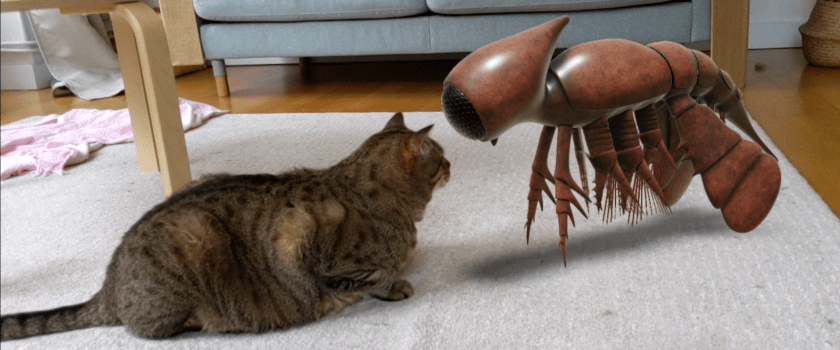 Spoiler alert: the featured image is highly misleading. That thing staring at the cat is a Cambropachycope, a sea-dwelling arthropod which lived hundreds of millions of years ago. Housecats, on the other paw, arrived on Earth about 3.4 million years ago, from a distant star system but by that time the Cambropachycopes were long gone, having evolved into bureaucrats. Plus, at 1.5 mm, they (the Cambropachycopes, not the bureaucrats) were basically teensy. Not to mention underwater. So there’s no way a Cambropachycope could have gone compound eyeball to eyeballs with a cat. I just put that image out there to get your attention.